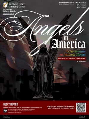 From April 30 through May 3 NECC theater will present Angels in America Part One: Millennium Approaches. Set during the height of the 1980s AIDS crisis, the play follows the intersecting lives of six individuals as they navigate love, loss, sexuality, and religious faith under the conservative political climate of the Reagan administration. Through its complex characters and emotional depth, the production examines themes of identity, community, and resilience in the face of uncertainty and fear.