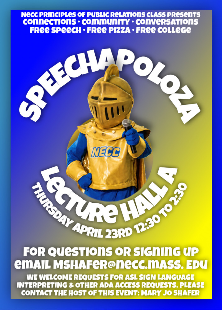 Have you ever felt like your voice is not loud enough or not heard enough? Well, don’t feel bad, you’re not alone. Come join us at Speechapalooza 2026 and be part of an unforgettable experience! Why join Speechapalooza? Speechapalooza is a Northern Essex student event that celebrates free speech and…